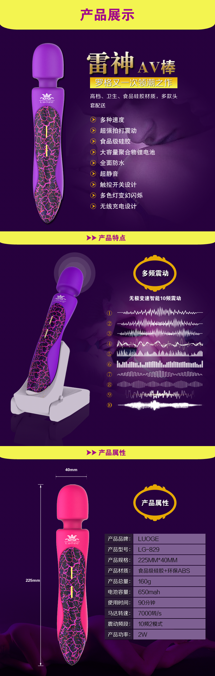 LG-829D觸控(kòng)全包膠震動棒